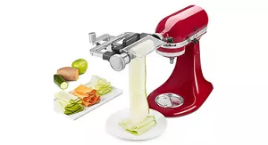Reinvent classic meals and inspire your culinary creativity with fresh fruits and vegetables. The KitchenAid® Vegetable Sheet Cutter Attachment produces thin sheets of zucchini, apples, cucumber and other fruits and vegetables. From substituting pasta and wraps with vegetable sheets, to reinventing snacks and sweet dishes, the options are endless.